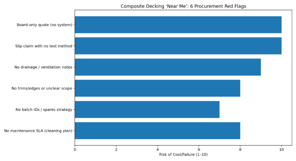 • Local ≠ system-ready: many sellers quote boards; sites need subframe, edges, drainage, ventilation and maintenance.