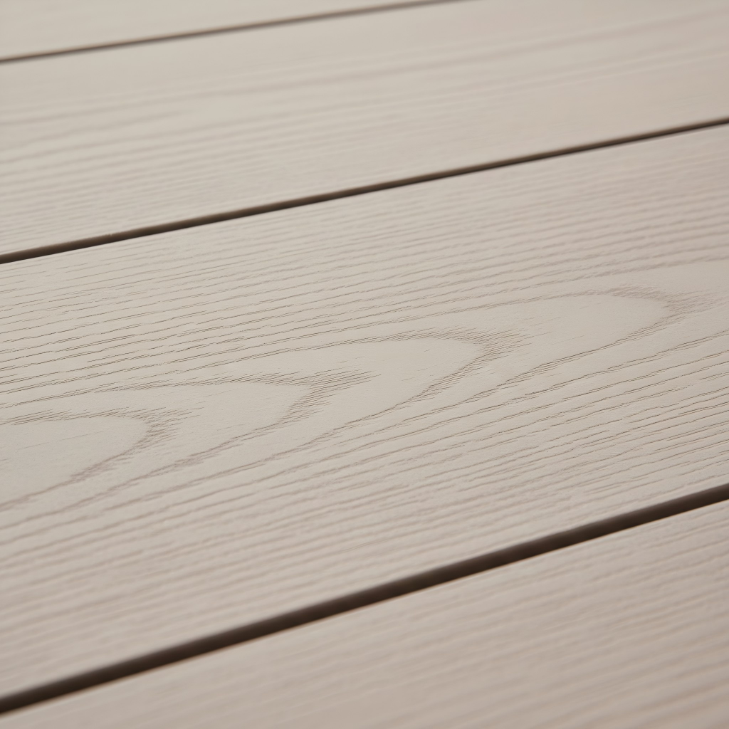 The wear surface is co-extruded over the core. If the cap is ASA, color drift (ΔE) and chalking typically drop—